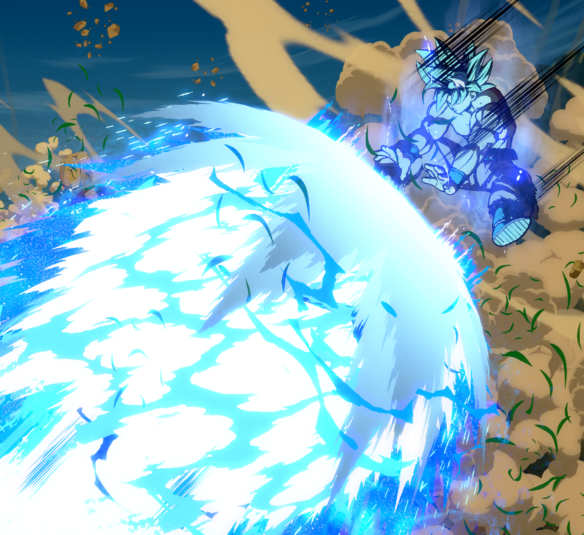 Goku appears behind the opponent while charging up an Energy Wave before flipping backwards. Goku can spend another bar of Ki to turn this move into Unpolished Instinct
